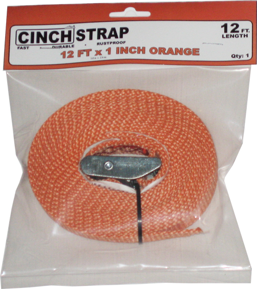 12 ft x 1 inch Cinch Strap, Orange Polyester webbing, Polybag 1 Pack