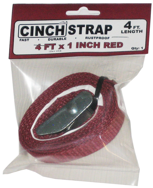 4 ft x 1 inch Cinch Strap, Red Polyester webbing, Polybag 1 Pack